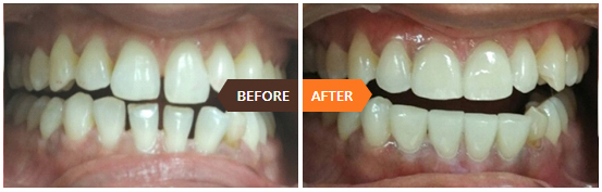 Crooked, crowded or spacing between teeth can be corrected by using Braces, Aligners or Veneers.
